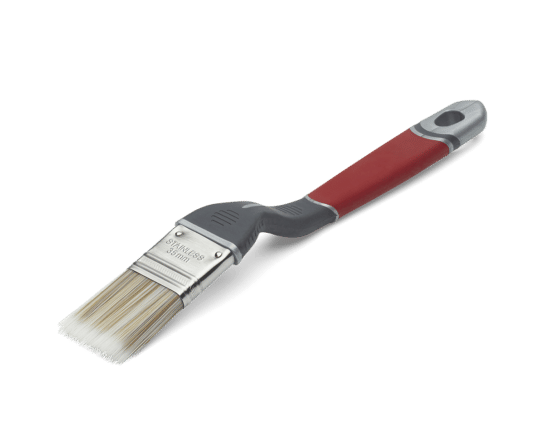 Den vinklede pensel gør det lettere at male ind i vinkler og hjørner hvor pladsen er begrænset.