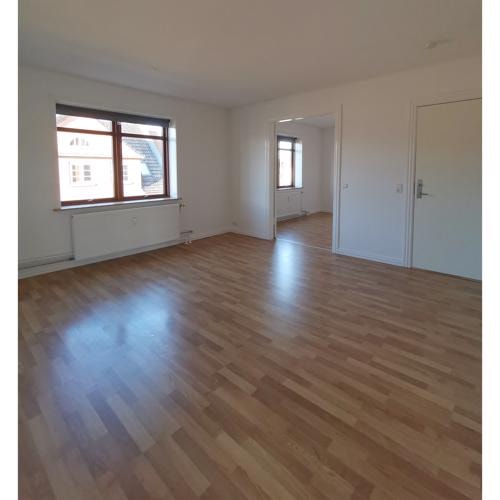 Hovedgaden 42 er en bygning bestående af 5 lejligheder, beliggende midt i Skals by. Der er ca. 200m til skole, indkøbsmuligheder (SPAR) og bus. Skals er en by der rummer alt lige fra idrætscenter, cafeer, frisør og bager, til dyreklinik. Lejligheden rummer 3 gode værelser fordelt på 82m2. Der er stort badeværelse og pænt lyst køkken fra HTH med opvaskemaskine. I kælderen er der fælles vaskerum med vaskemaskine og tørretumbler, som man betaler til pr. måned pr. lejer