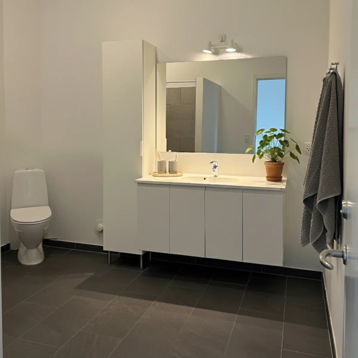 Der er adgang til offentlig transport lige udenfor hoveddøren. Indkøbsmuligheder som bager, lige rundt om hjørnet og Super Brugsen på den anden side af gaden.