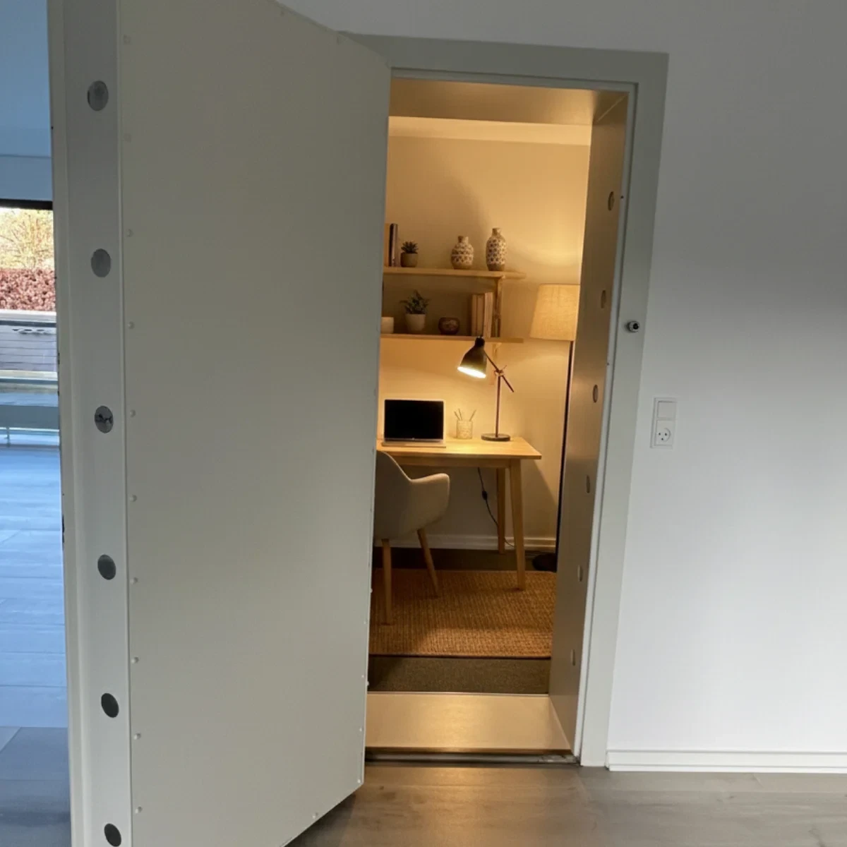 Lejligheden rummer 4 værelser fordelt på 142m2, med en tilhørende have og terrasse. Det specielle ved denne lejlighed, er at der medfølger et depotrum, som er den gamle bankboks med oprindelig dør ind til boksen. Så ønsker man noget autentisk og en anderledes bolig skal man bo her.
