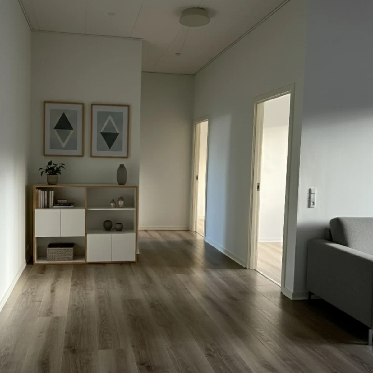 Den gamle Andelskasse i Frederiks er bygget om til 3 lejligheder. I år 2017 blev lejemålet total renoveret, med Svane køkken og bad, Bosch hårde hvidevarer samt nye gulve og klinker i hele lejemålet. Som noget ekstra er der opvaskemaskine i dette lejemål.