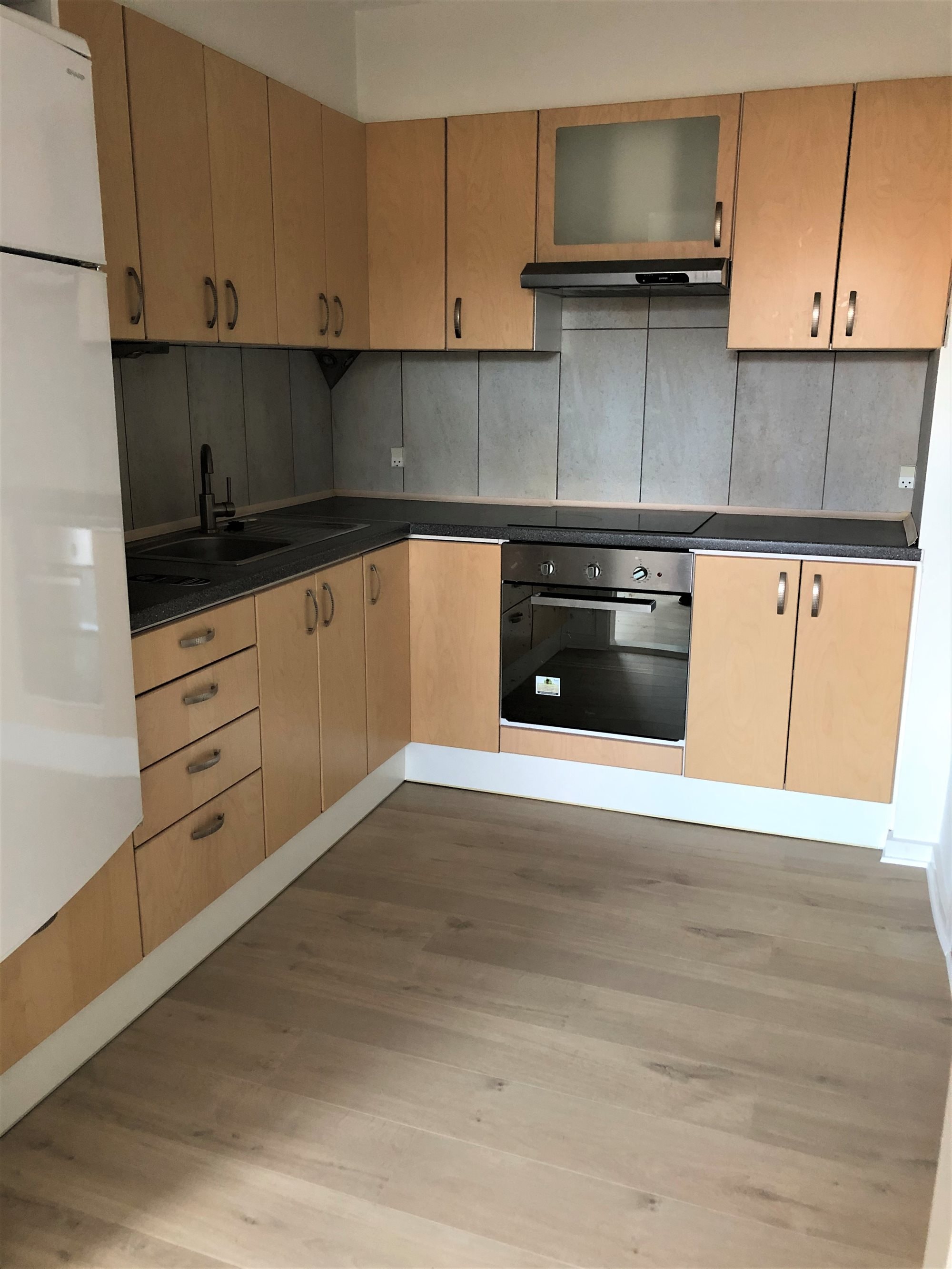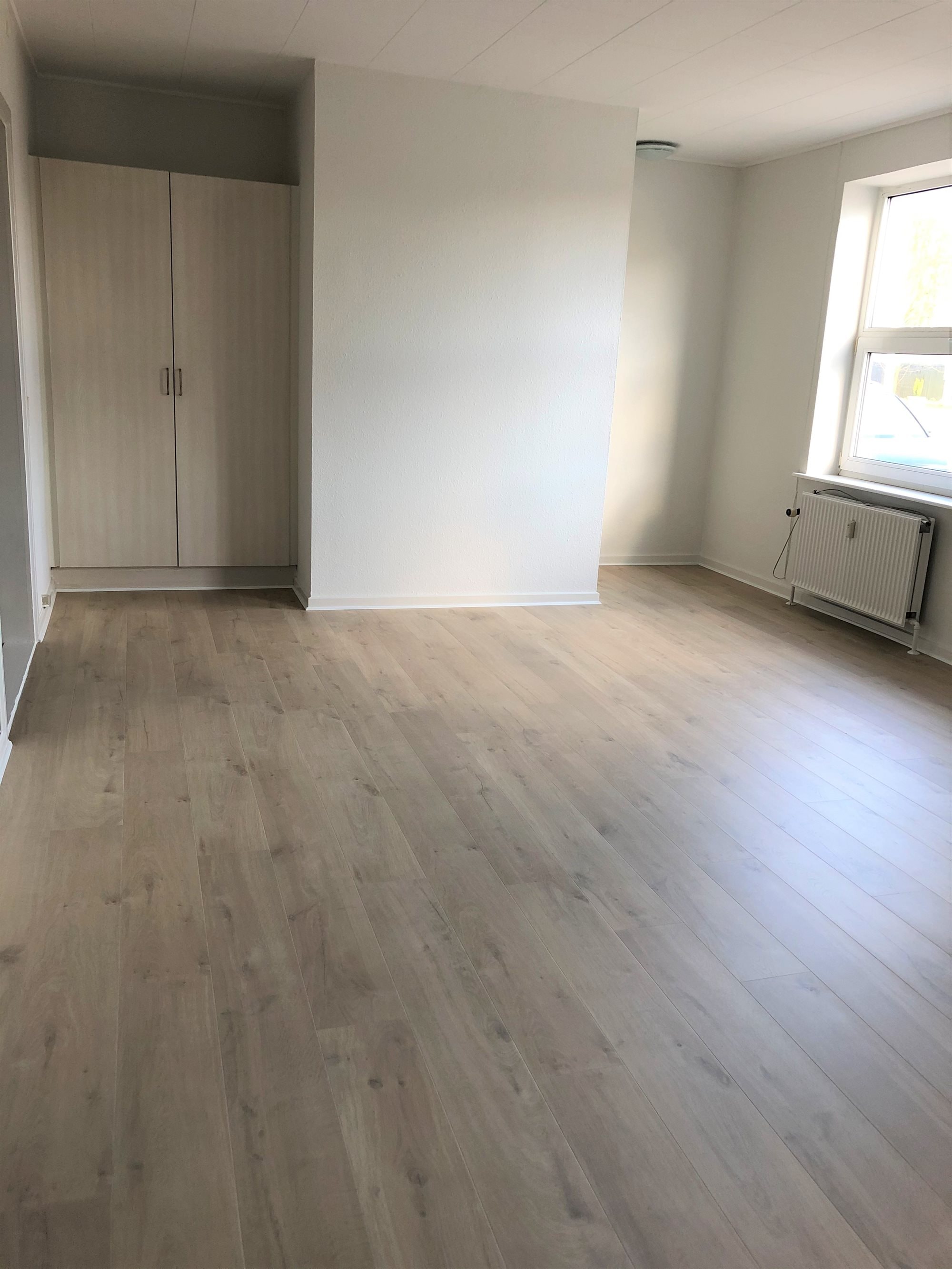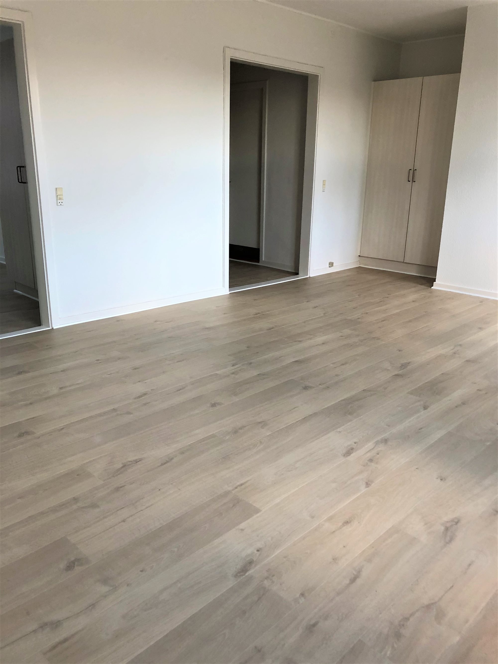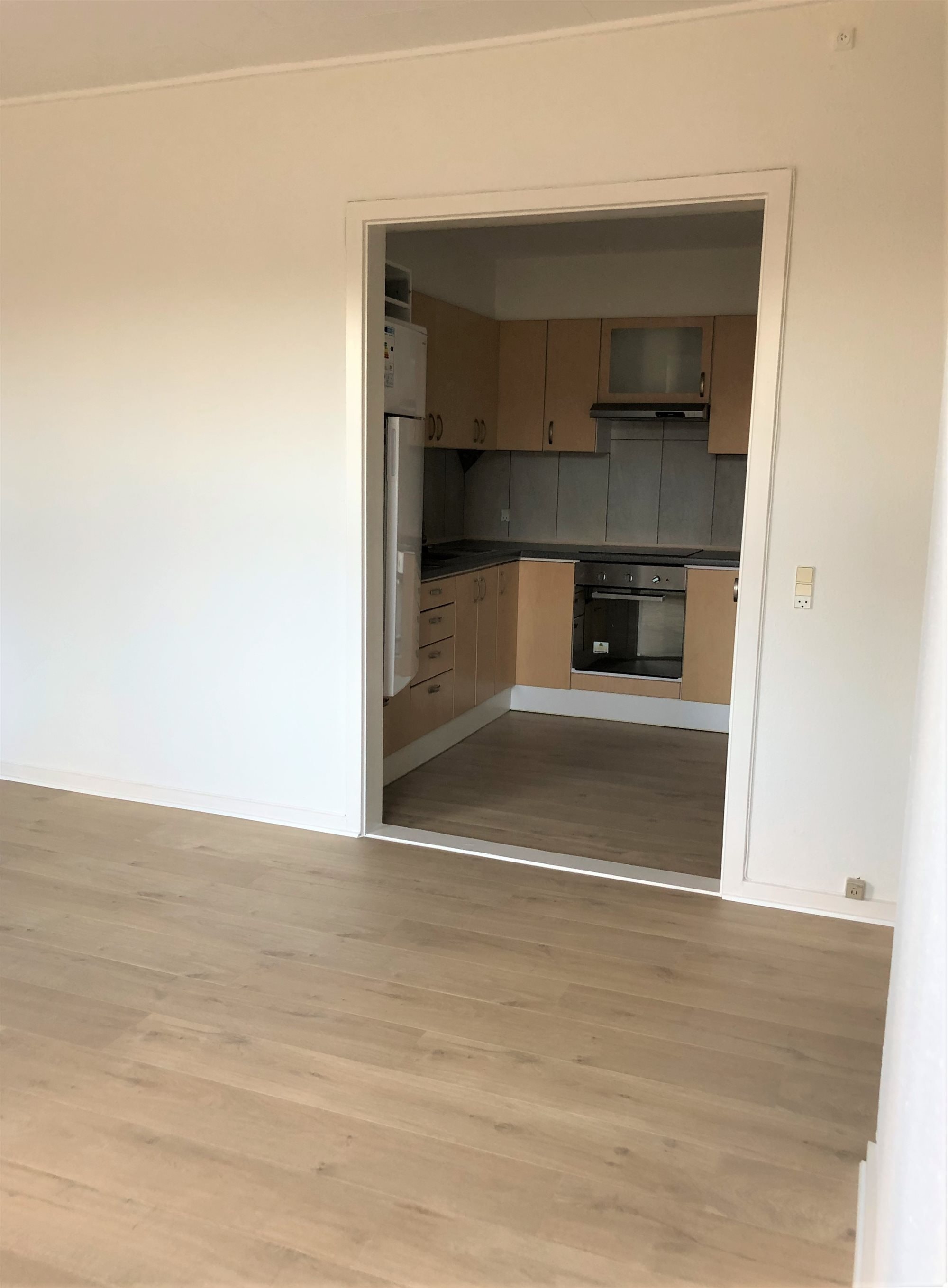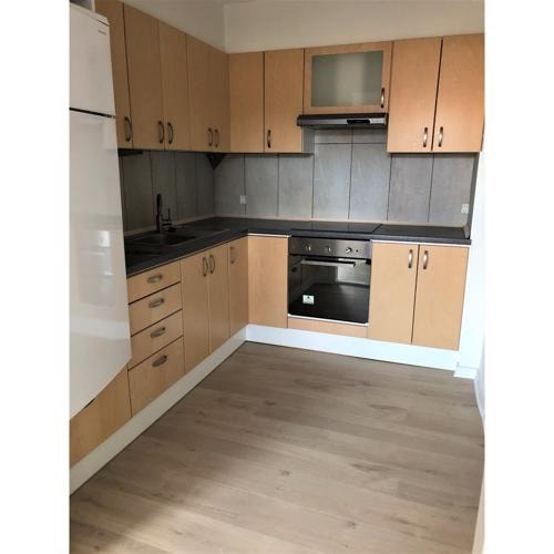 En fin 2. værelses lejlighed i Møldrup på 75m2, med eget køkken og bad. Lejligheden har i 2020 fået helt nye gulve.