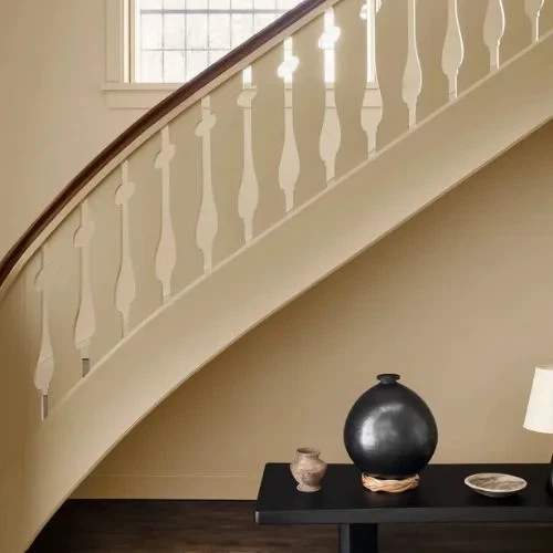 Kombiner den med gyldne hvide eller brune nuancer som Egghvit og Smoked Oak eller en dæmpet orange som Adventure.