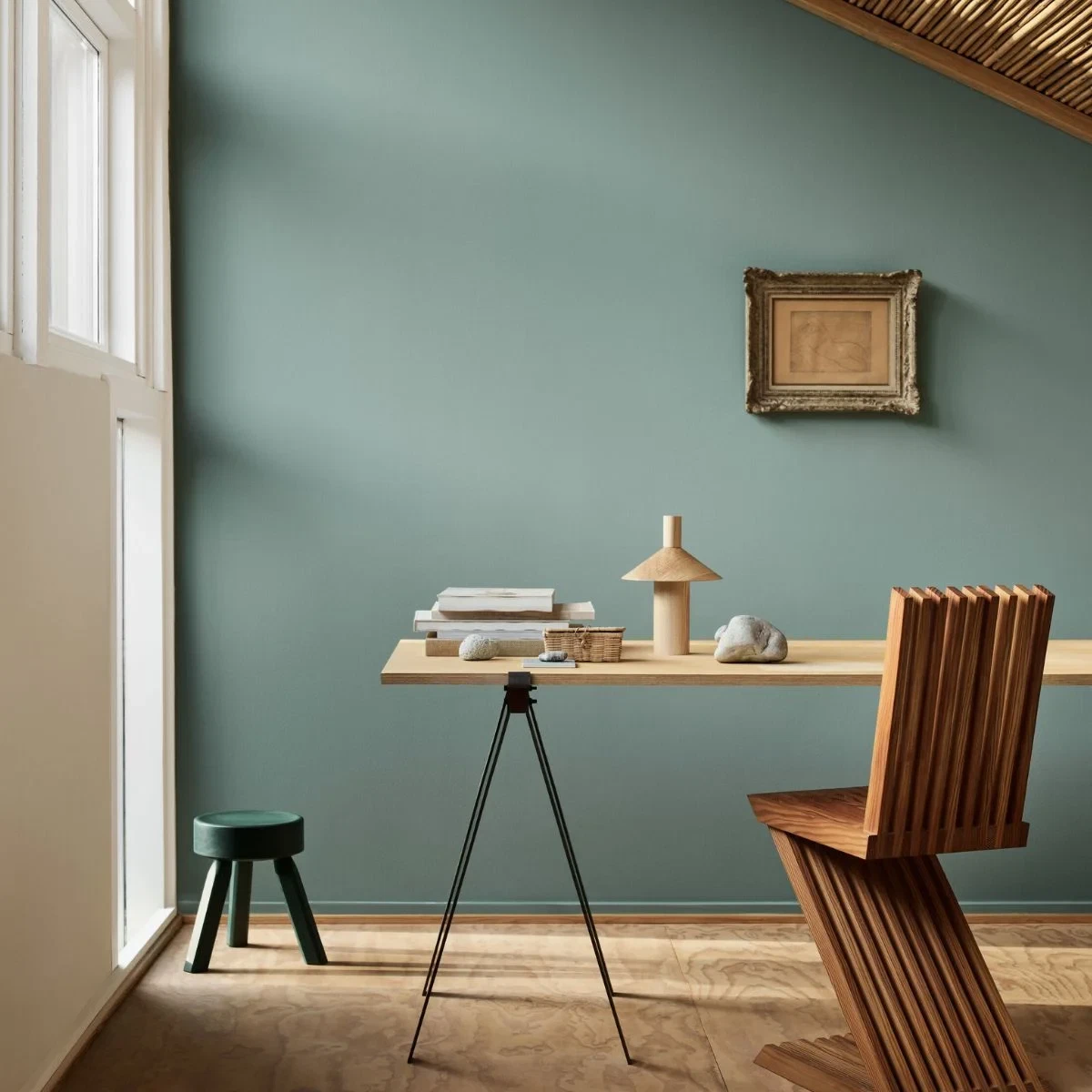 Cityscape er en dæmpet og kølig blålig grøn farve. Kan med fordel bruges til at opfriske hvide, beige og grå nuancer, som Unbleached og Klassisk Hvit.