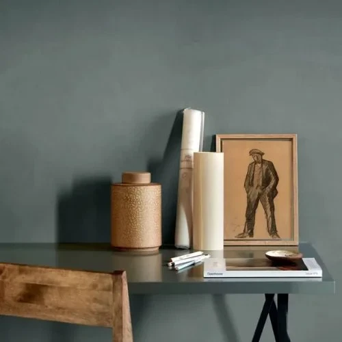 Evening Green 6352 er en dæmpet blålig grøn, som har en grå nuance. Perfekt til dig, der ønsker en grøn farve, som ikke er for overvældende.