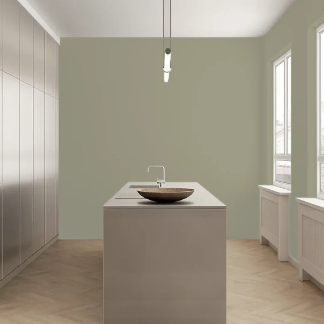 Jotun Green Harmony er en afdæmpet gylden-grøn farve. Denne grønne farve tilfører rummet en grøn nuance, men uden at det bliver mørkt. De lyse gyldne undertoner bidrager til en blød og varm atmosfære.