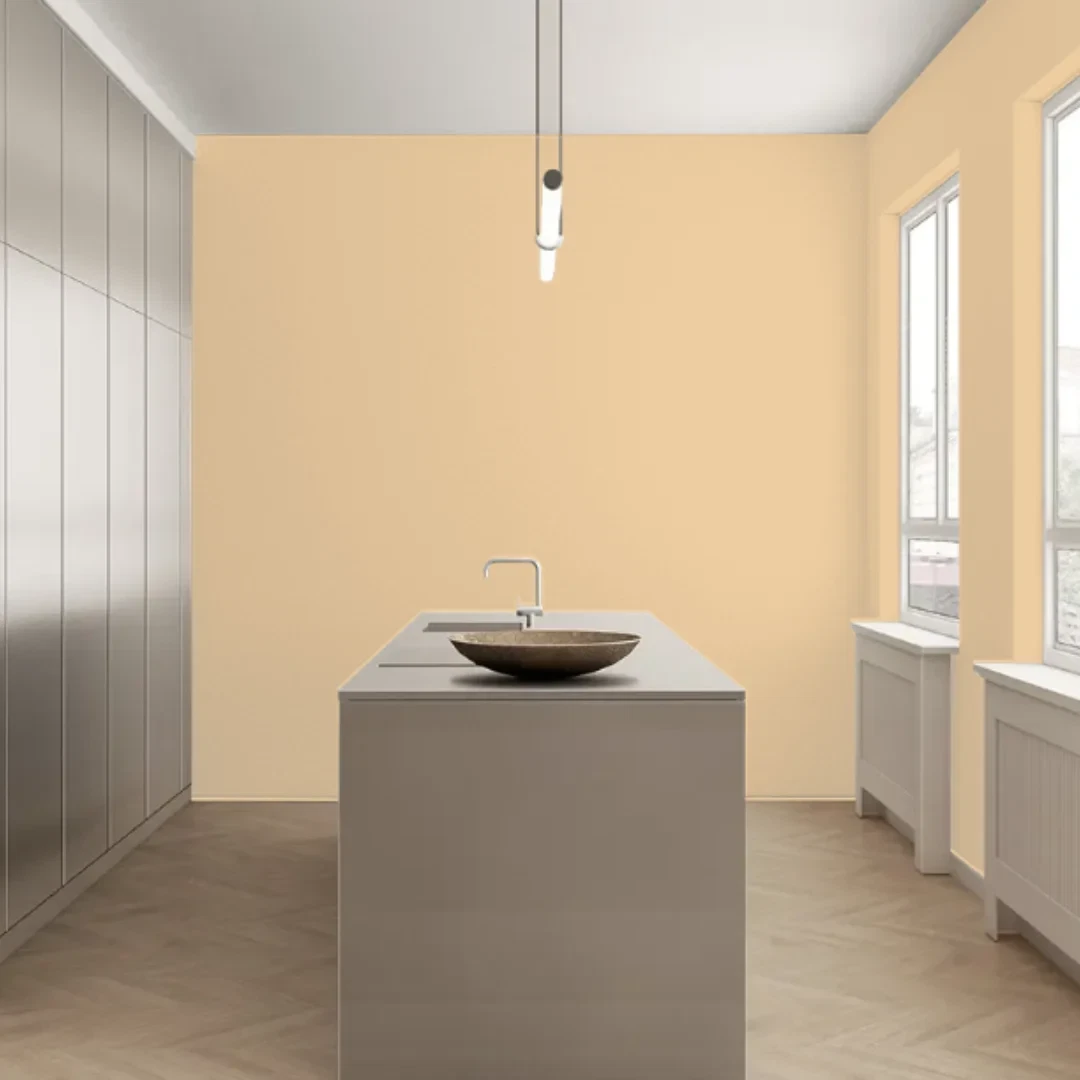 En dæmpet gul med en varm og rødlig undertone.