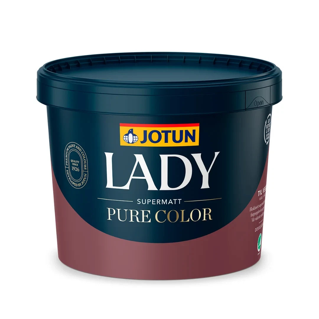 JOTUN LADY Pure Color  kan tones i et bredt udvalg af nuancer, hvilket gør det nemt at finde den perfekte farve til dit hjem. Malingen er kendt for sin overlegne farvegengivelse, hvor de supermatte egenskaber giver en dyb og eksklusiv finish.