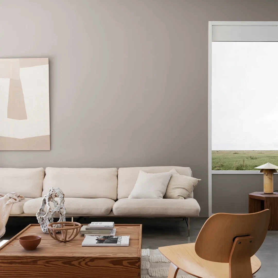 En støvet og dæmpet lavendel farve med en let kølig undertone.