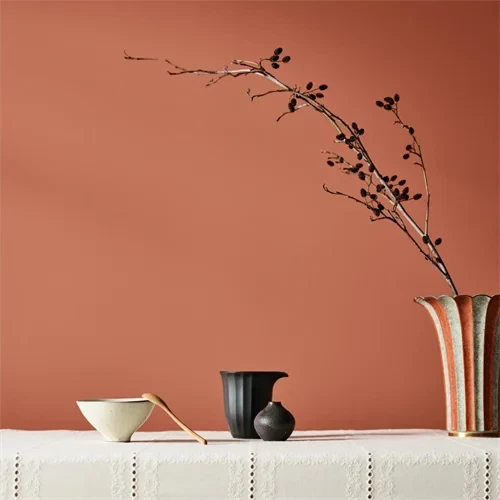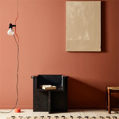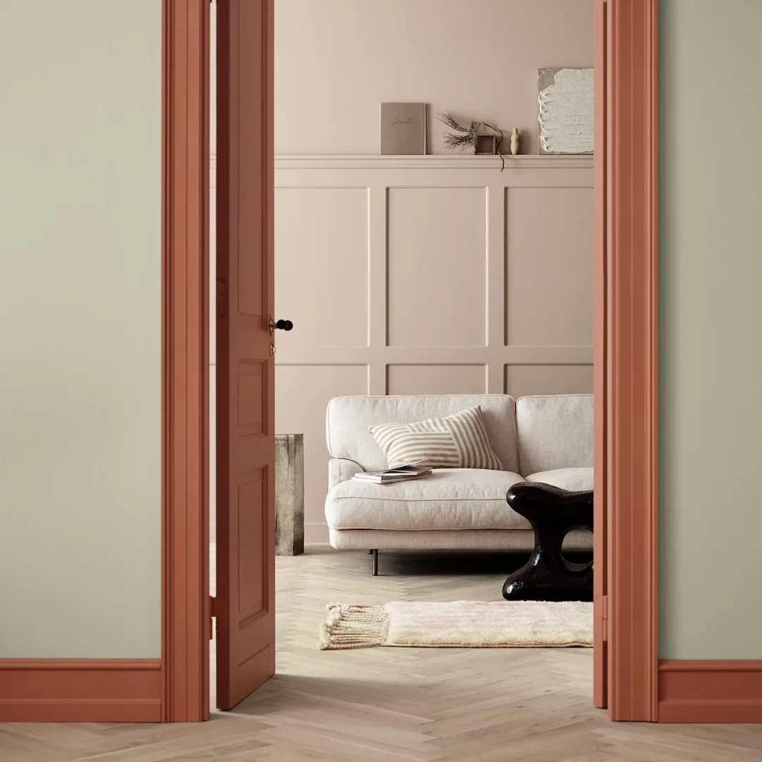 En elegant og afdæmpet koralrød, der både er smuk på vægge og på hjemmets detaljer som eksempelvis møbler, karme og paneler.