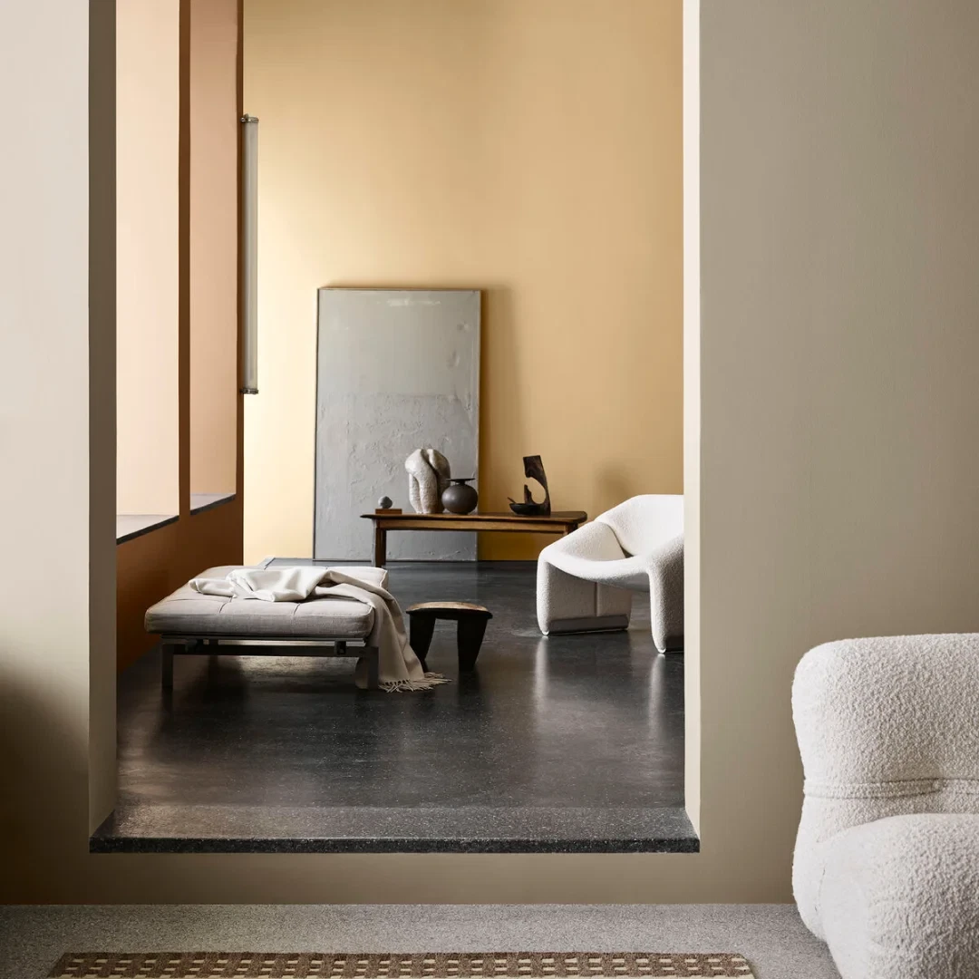 Kombiner den med rene hvide nuancer som Klassisk Hvit for virkelig at lade den træde frem. Eller sæt den sammen med gyldne fersken eller rosa farve for et flot farvespil - eksempelvis Peachy.