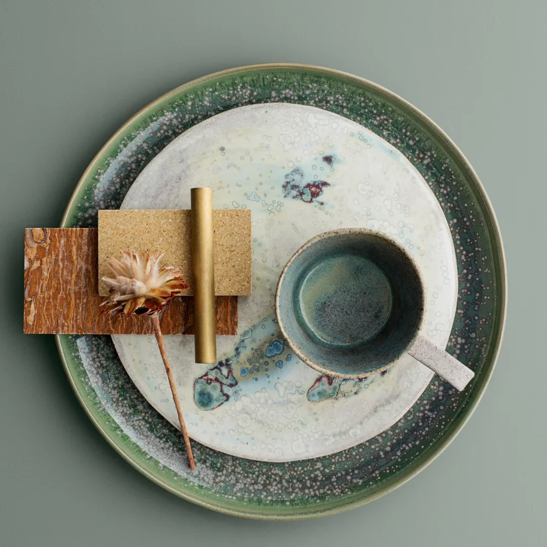 En smuk nuance der ligger sig mellem en grøn og blå nuance. Den er afdæmpet og syner derfor i nogle sammenhænge grålig.