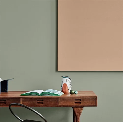 Jotun Treasure 7628 er en afdæmpet grøn farve. Den er mere kold i tonen end den eksempelvis Jotun Green Leaf 8469