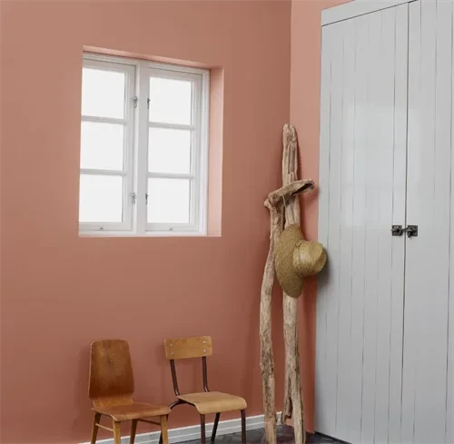 Jotun Warm Blush 2856 er en rødrosa farve, der er smuk og varm i nuancen.