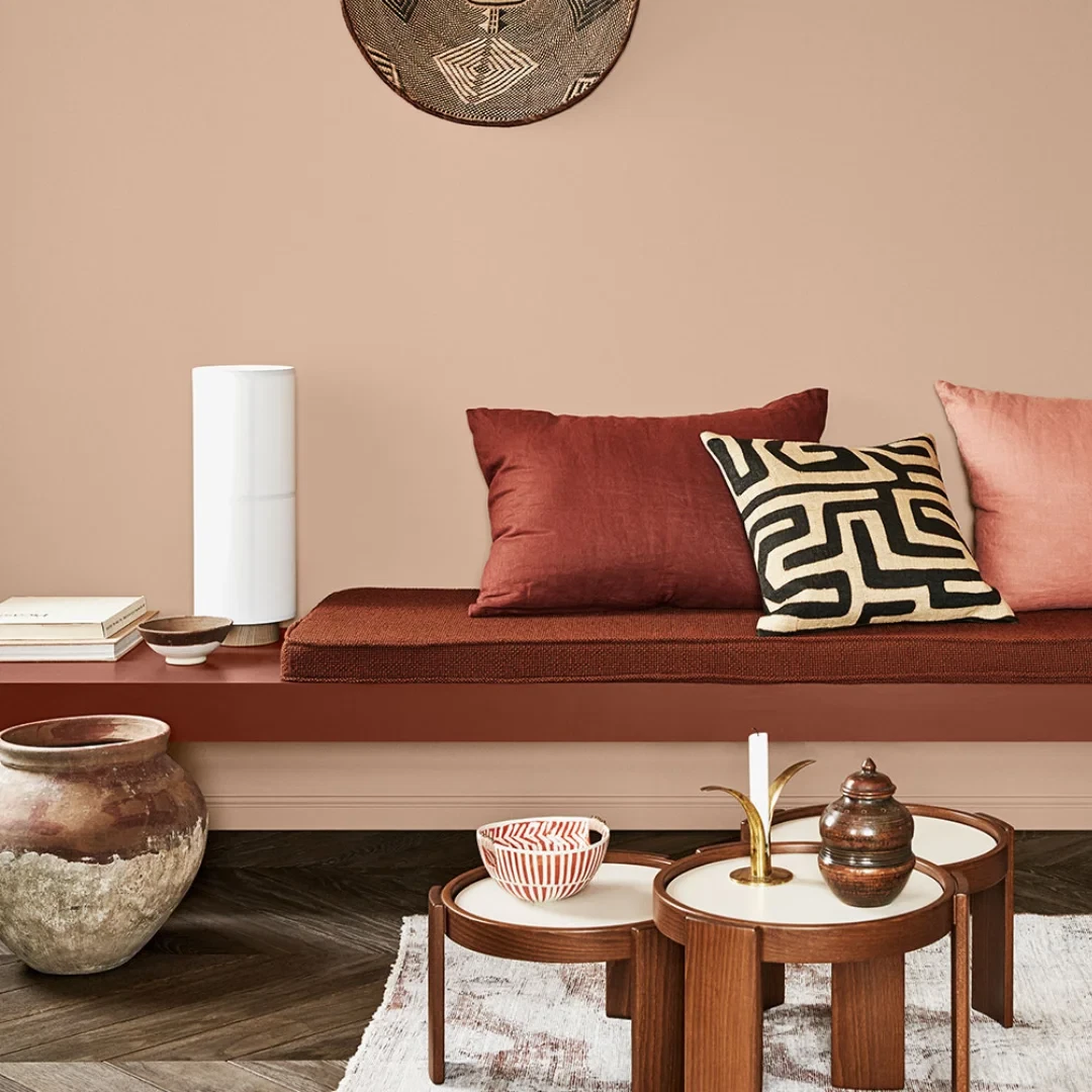 Jotun Welcoming Red er en gylden og dyb rød nuance. Den er en mild og behagelig rød med et hint af rosa.