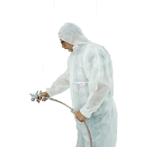 Denne malerdragt med hætte er god at bruge, hvis man ønsker at beskytte sit tøj under malerarbejde.