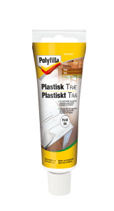 Hvis der er huller i træet, skal de også lukkes med en egnet spartelmasse. Her anbefaler vi Polyfilla Træfiller Fin.