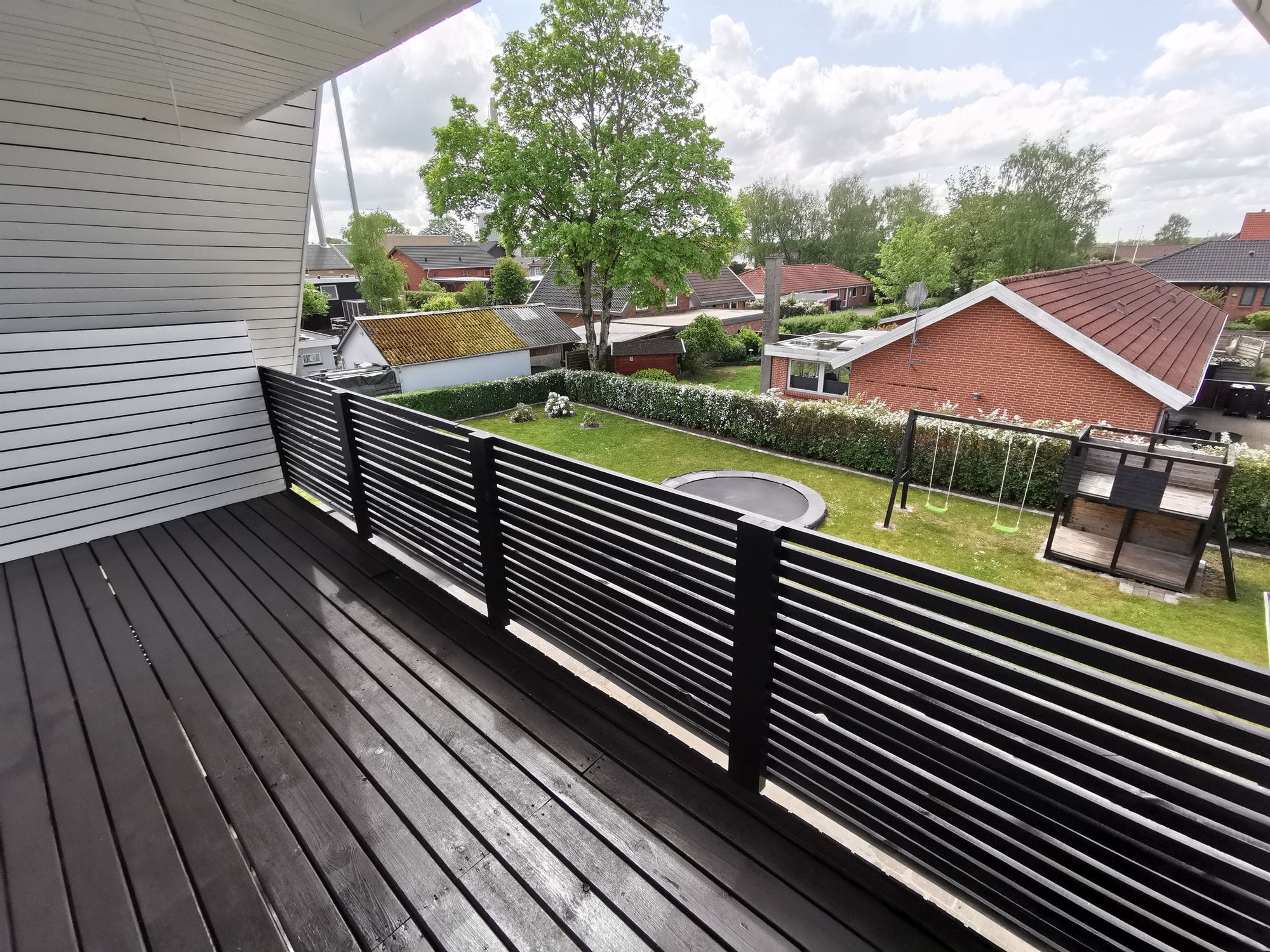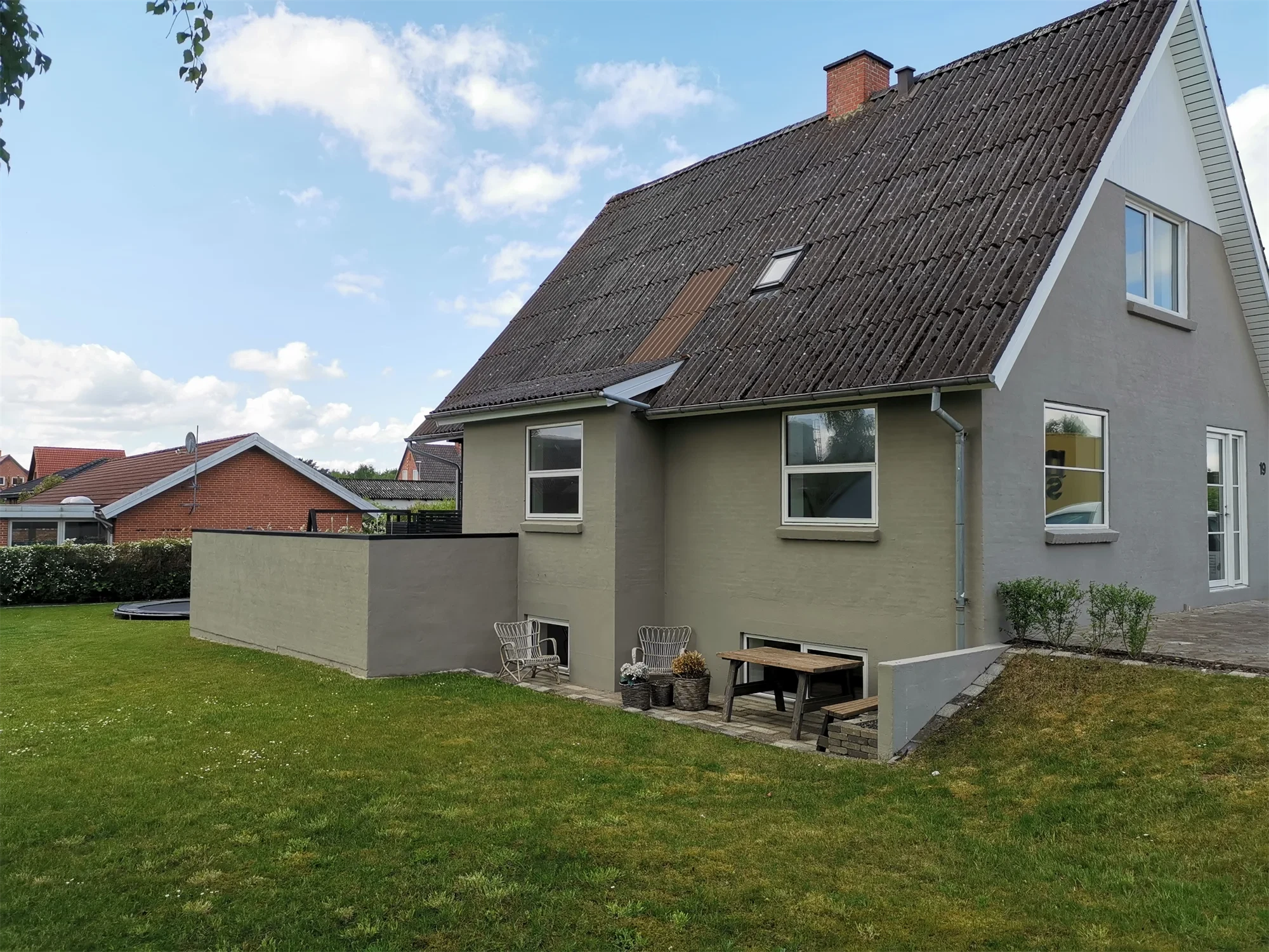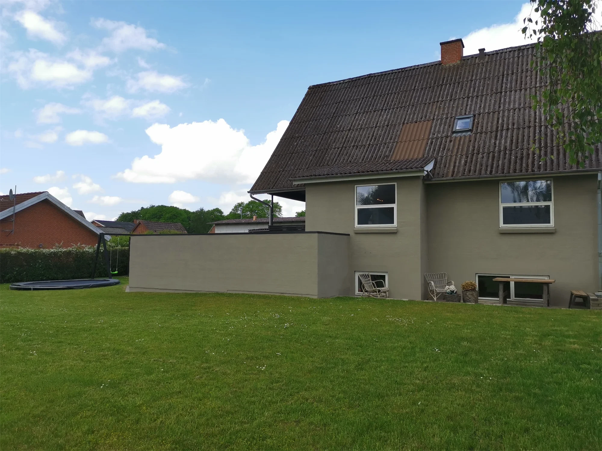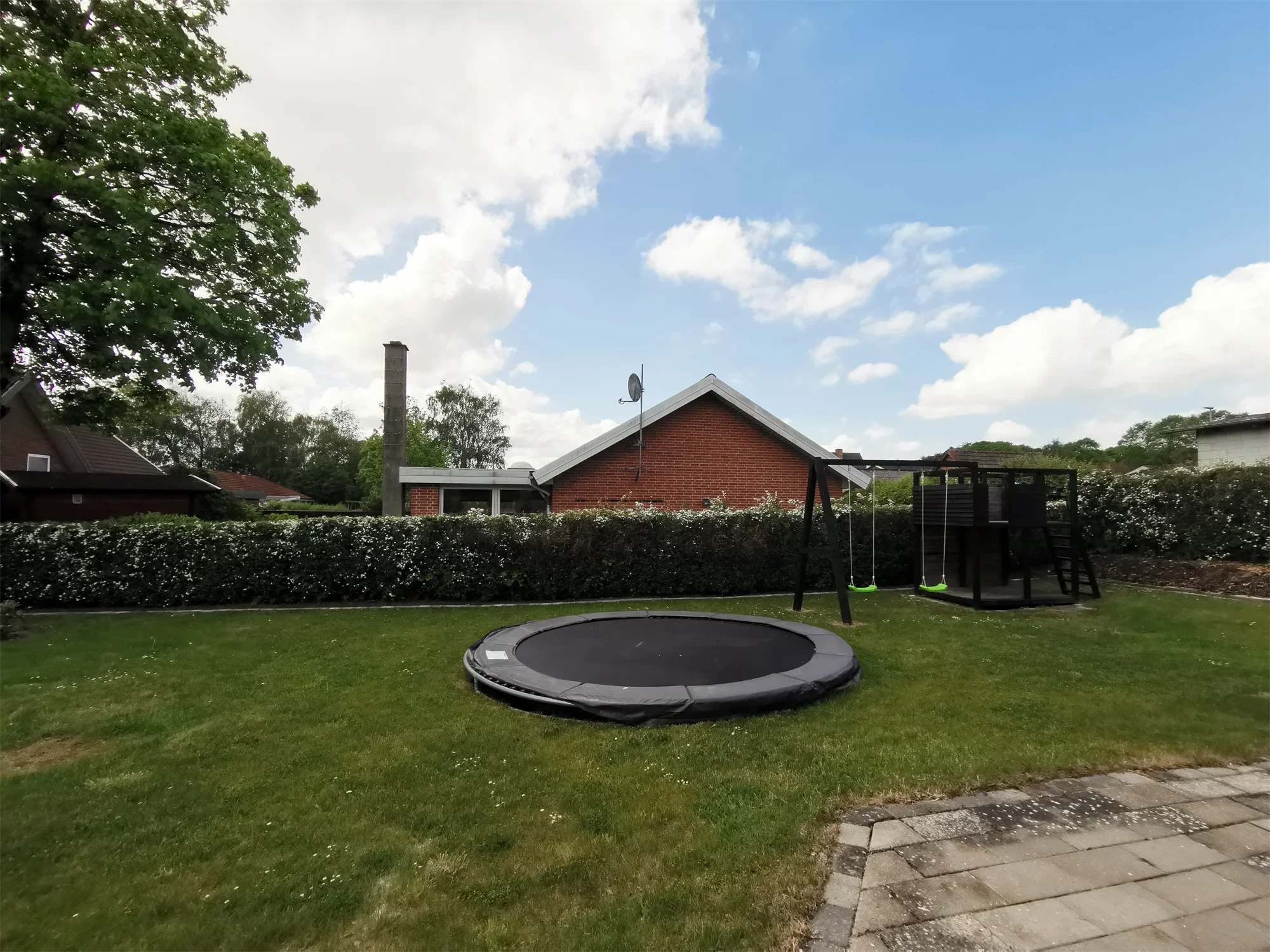 Til huset får du en stor lækker have med god plads til børnene. Der er nedgravet trampolin, sandkasse og legetårn, samt skur til div. haveredskaber.