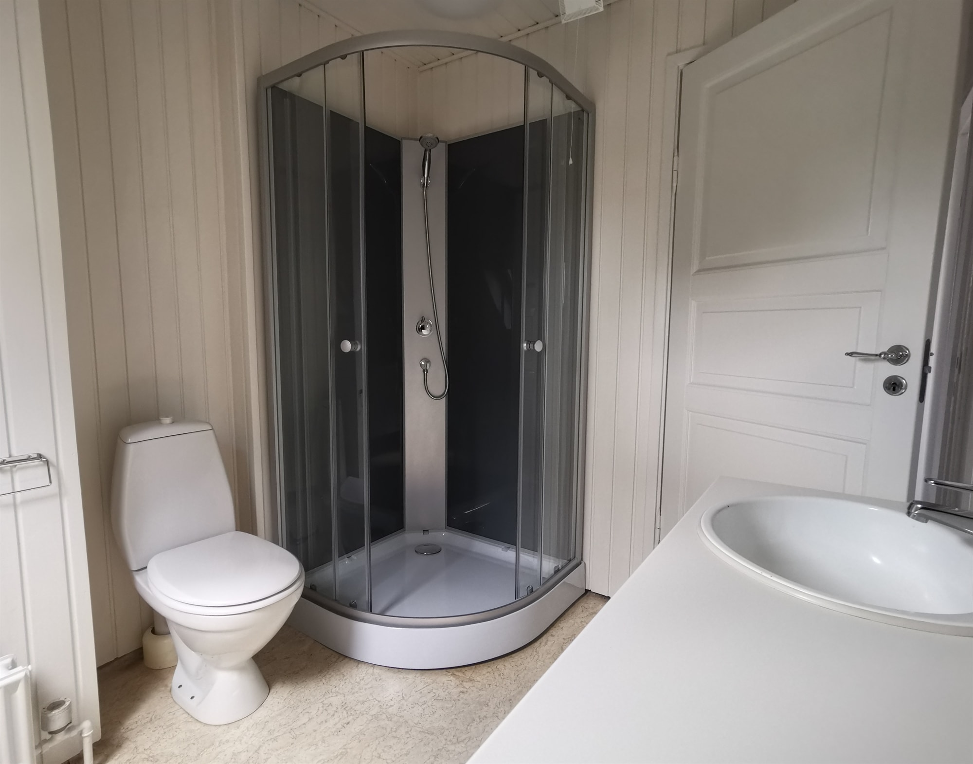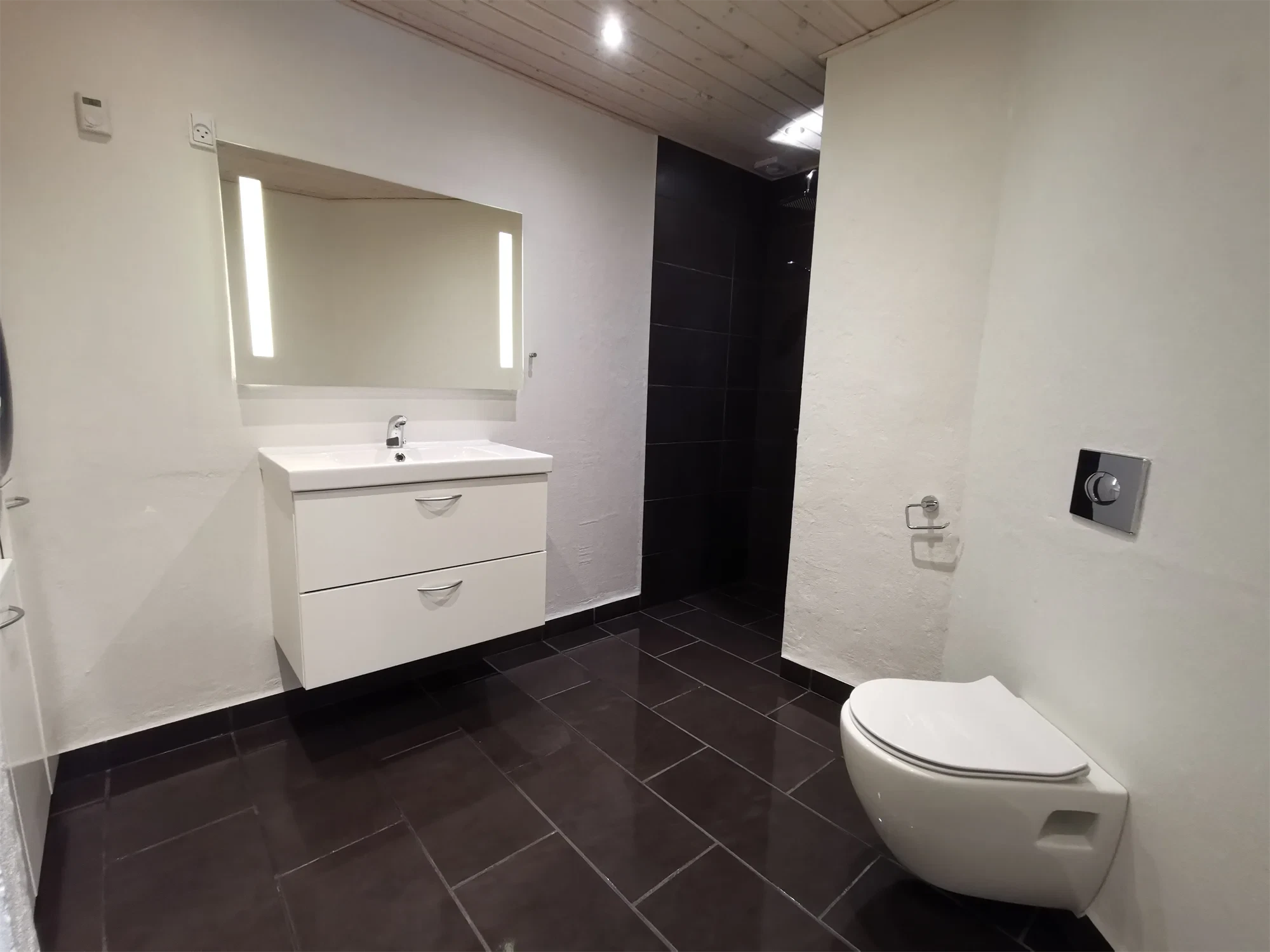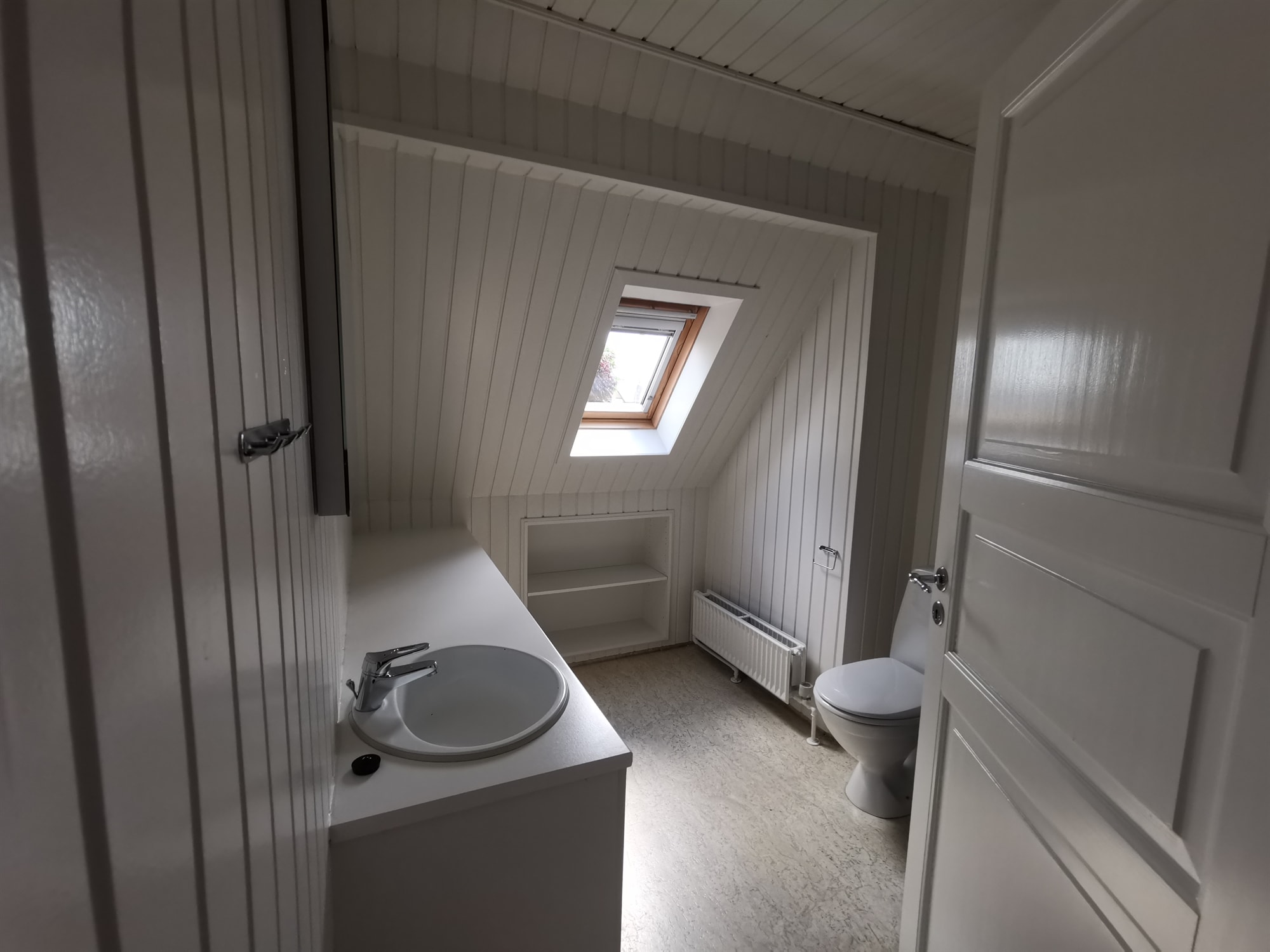 I kælderen er der en stor fordelingsgang med direkte udgang til haven via en bred ståltrappe. Her får du to gode disponible rum og et lækkert nyt badeværelse med vaskesøjle.