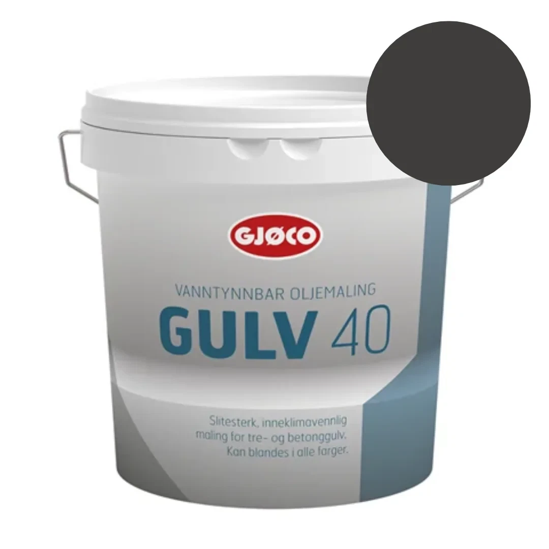 Gjøco Gulv 40 V er en vandfortyndbar gulvmaling til indendørs brug med en halvblank finish.