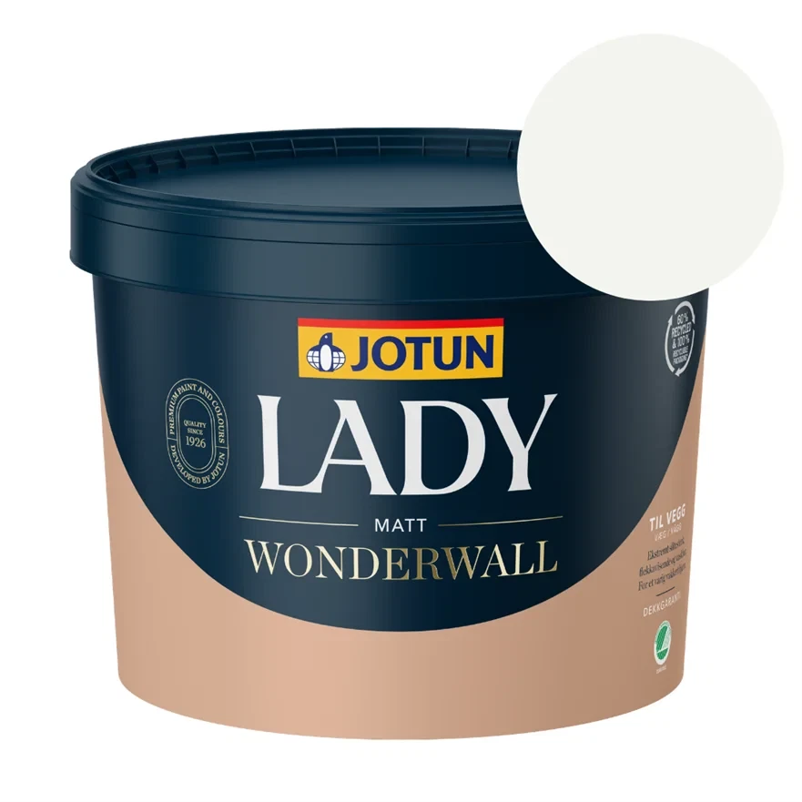 Jotun Lady Wonderwall Glans 5 er en vægmaling i absolut topkvalitet, der kombinerer en smuk, mat finish med en ekstremt robust og vaskbar overflade. Denne maling er skabt til moderne hjem, hvor æstetik og funktionalitet går hånd i hånd. Med Lady Wonderwall får du en elegant, slidstærk og pletafvisende overflade, der bevarer sin skønhed i mange år. Perfekt til aktive hjem med børn, kæledyr og daglig slitage.